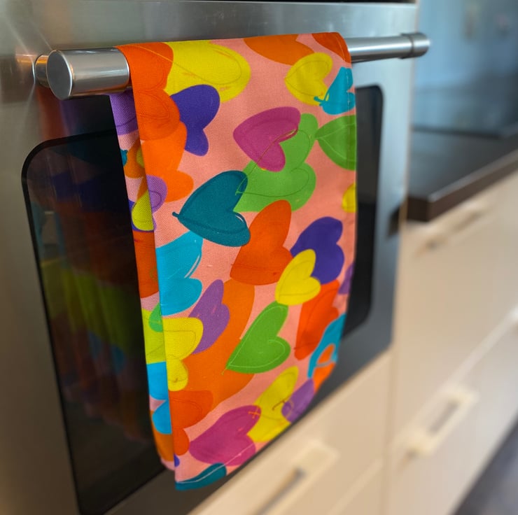 Add a splash of fun and colour to your kitchen with ourtumbling hearts Tea Towel! Perfect for summer, this vibrant tea towel features a colouful heart design that’s sure to brighten up your home and bring a smile.