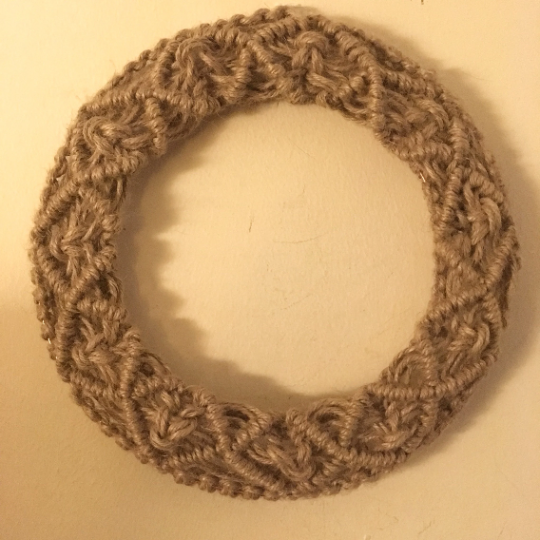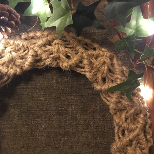 A unique intricately knotted twine wreath perfect for Christmas, indoor or outdoor use, or as a table centrepiece, simply add foliage/flowers.