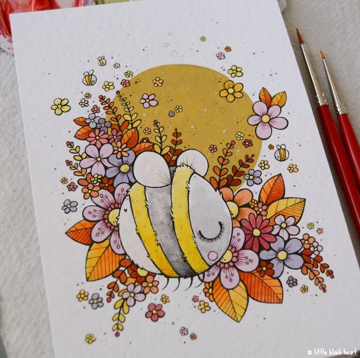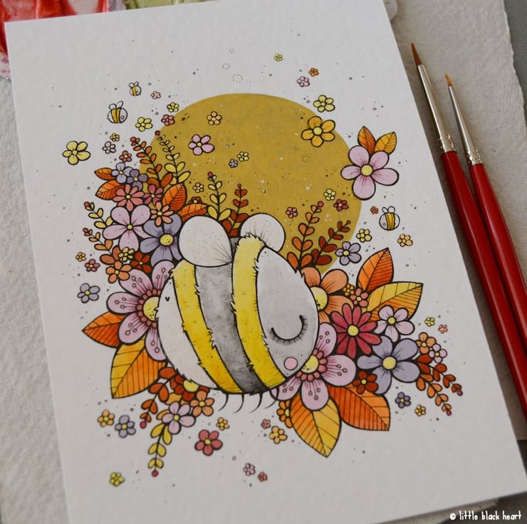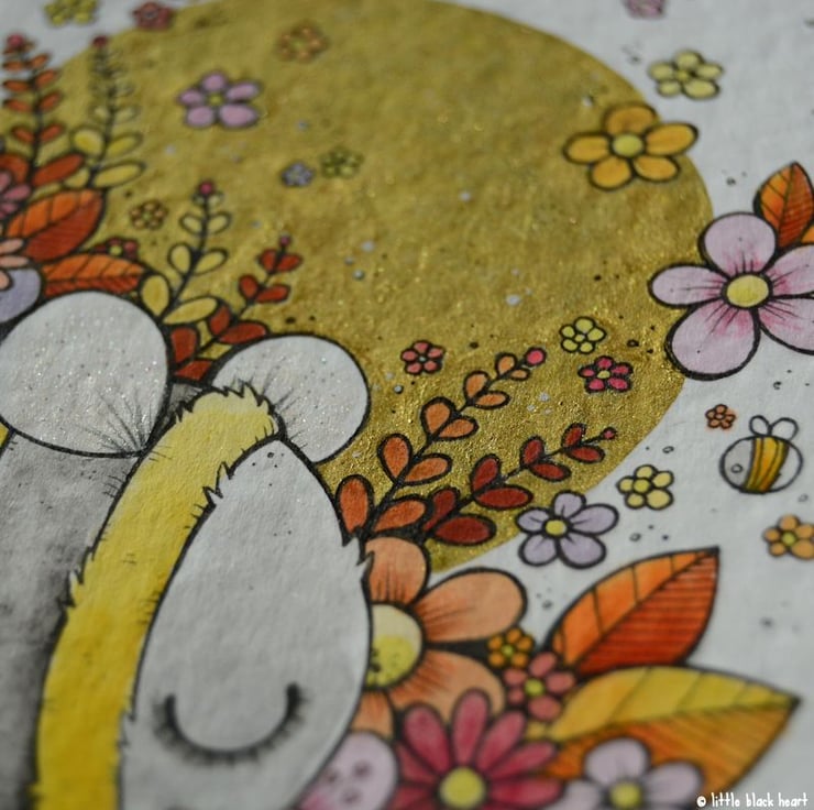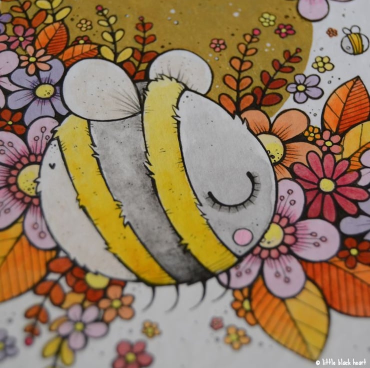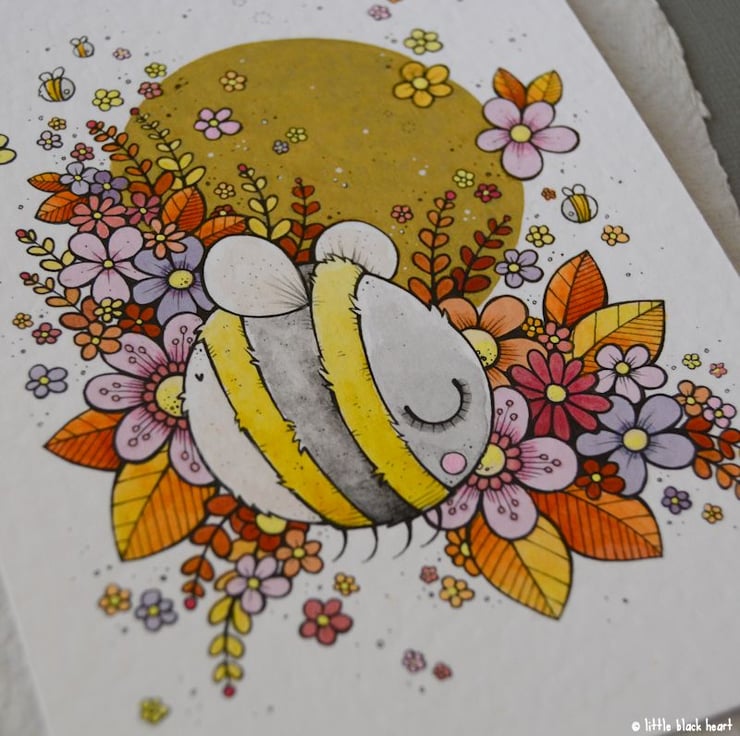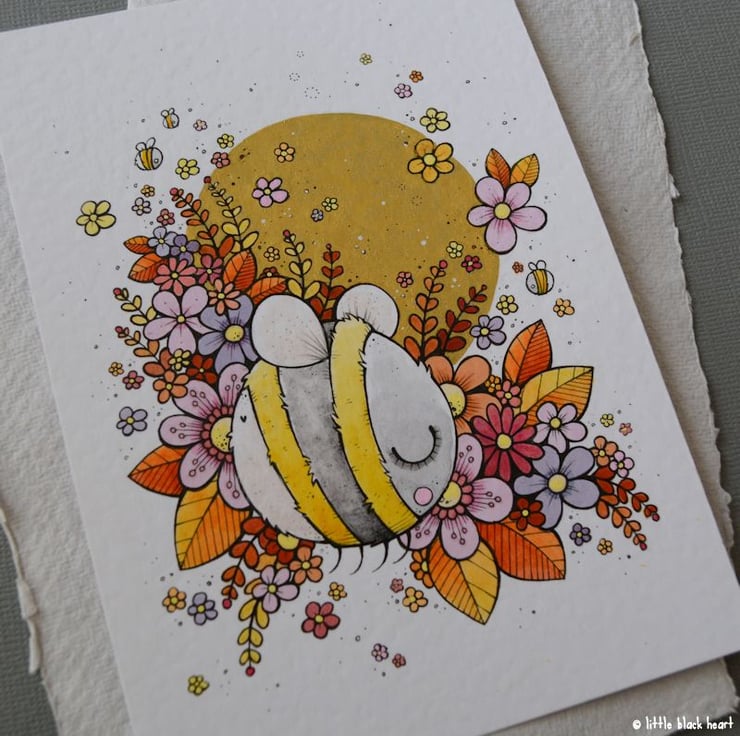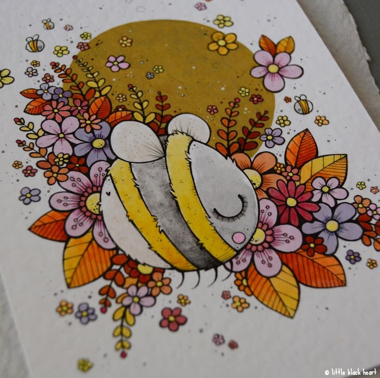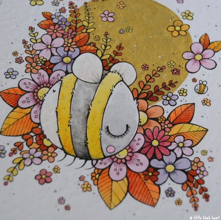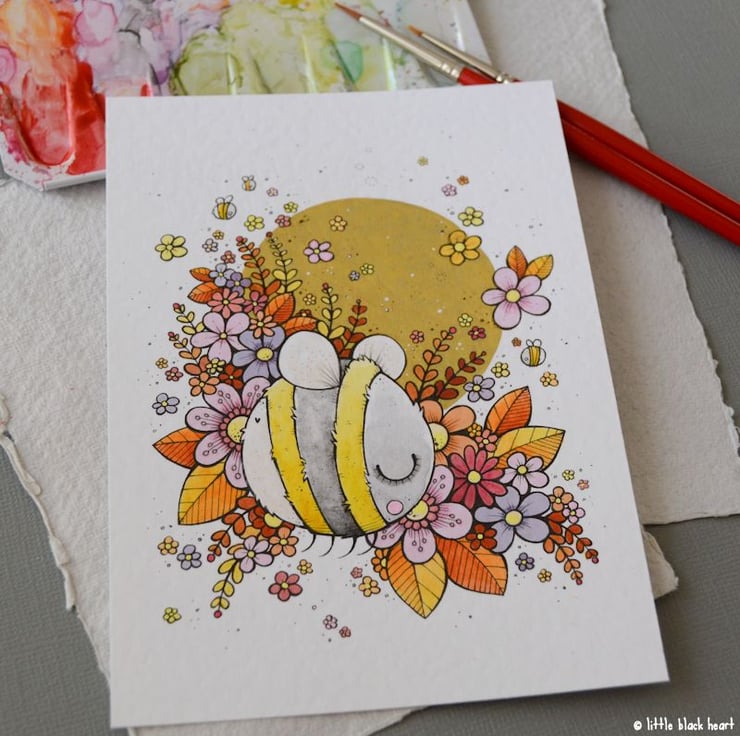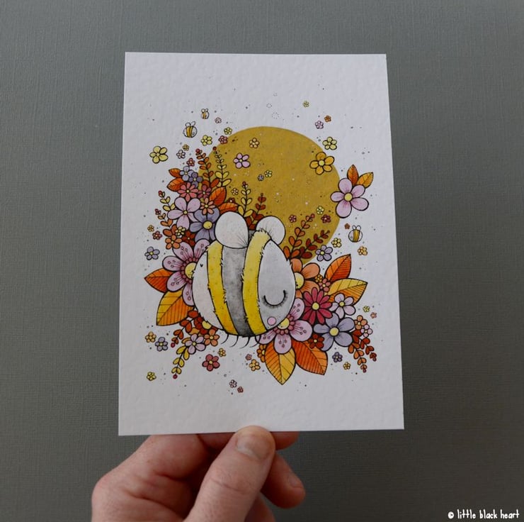 this artwork is an original illustration in artists pens and watercolour paint, on a lovely textured cardstock (300gsm). drawn in fine detail with a tiny 0.05 nib, and carefully coloured with art pens and just the tip of a tiny paintbrush.