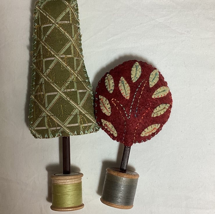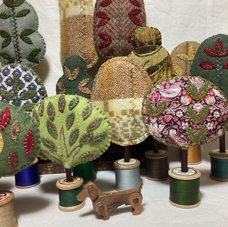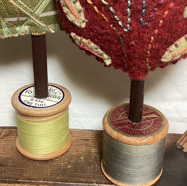 I’ve been making little cotton reel trees for over 8 years and have developed a range of styles and shapes that sit well together.