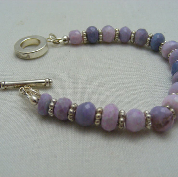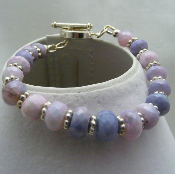 One of a kind bracelet, handmade with, graduated faceted opal gemstone rondelles, 5mm silver plated daisy spacers, silver plated findings and toggle clasp.