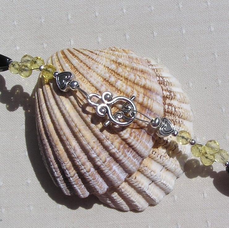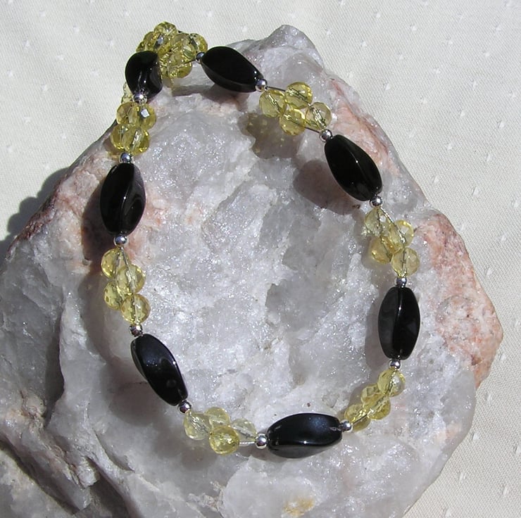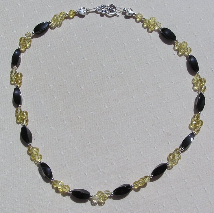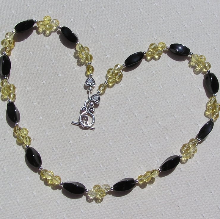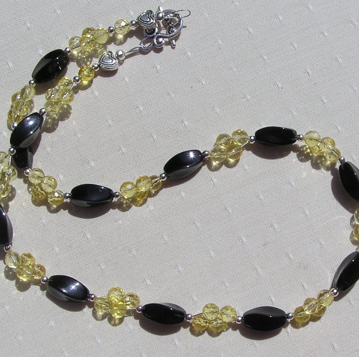 This Stunning Necklace is made from Twisted Black Agate faceted beads separated by Yellow Citrine faceted round beads clustered together in four's, each section separated by a tiny Glistening Silver spacer - a Gorgeous sunray effect that will look stunning either worn casually or with something more Elegant for a Special Evening out