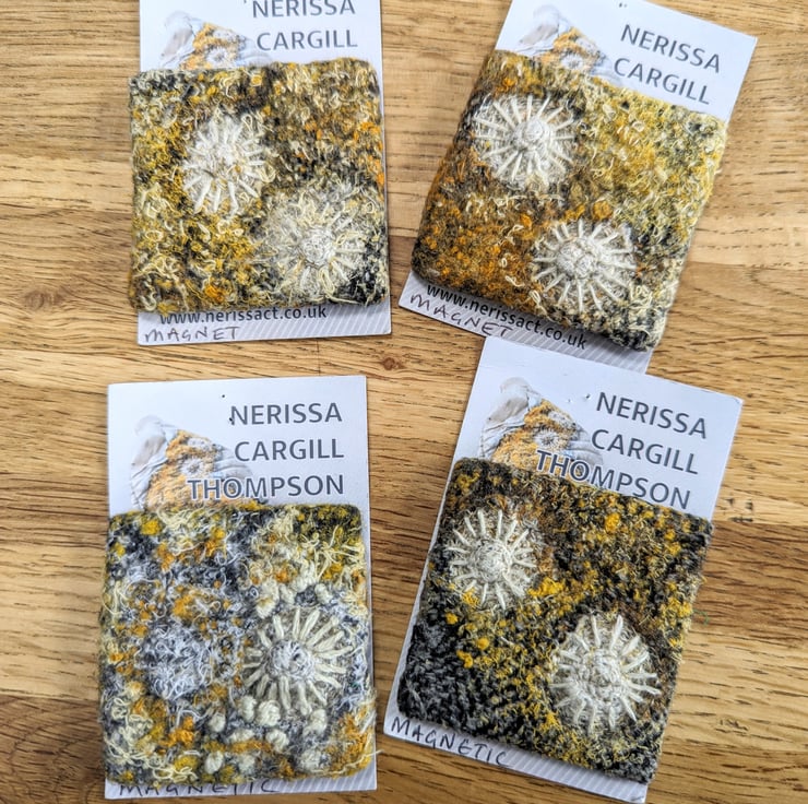 I create coastal inspired textures using a combination of embellishing and embroidery; blending a variety of recycled fabrics to create subtle variations in tone. These are stitched inside waste plastic to cast true to life pieces with cement giving a distinct contrast between the manmade structure of the packaging and the soft natural textures of the textiles.