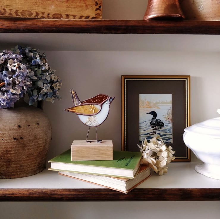 Beautifully illustrated and handcrafted in stained glass, this little suncatcher would make a gorgeous, fun addition to any home. Whether displayed on your favourite shelf or shinning bright in front of your window. This little bird is a great way to introduce some colour and create a more contemporary, curated space within your home.