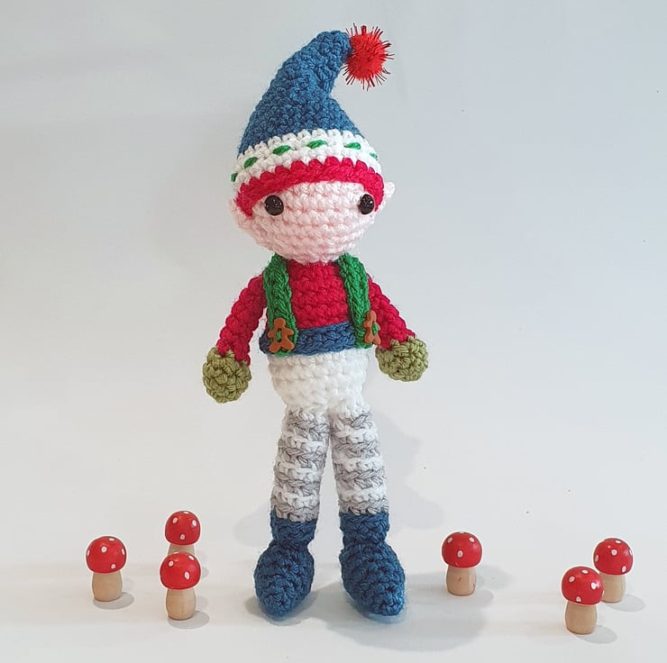 You know those delicious chocolate yule logs you get at Christmas time? Yule is in charge of making them! He has a cute little pom pom hat and stripy tights. He is approximately 18cm tall (with hat bent over).