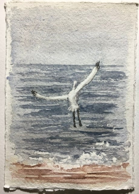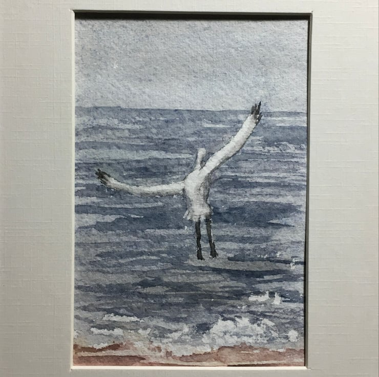 This is a hand painted original watercolour, on handmade watercolour paper, using Artist quality materials, and shows an Egret taking off from the beach. It measures 15cm x10cm approx and will be sent with a mount in a cello bag within a sturdy envelope, postage free to UK destinations.