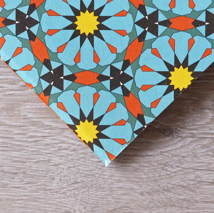 Each notebook is completely unique and the section of the pattern showing on the cover will vary for each notebook.