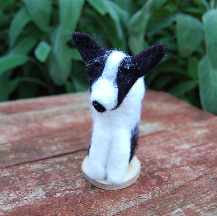 Needle felt white and black dog,  Border Collie sheep dog 10 cm tall