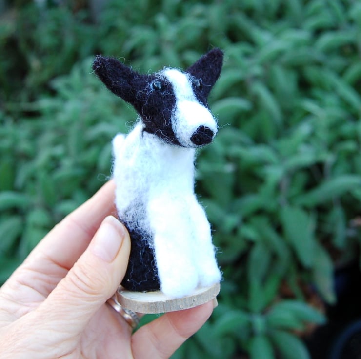 Needle felt white and black dog, Border Collie sheep dog 10 cm tall