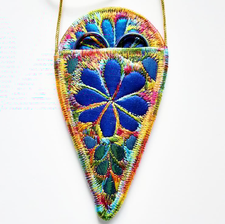 This is a handmade machine stitched fabric scissor holder necklace which includes a lovely pair of milward scissors.