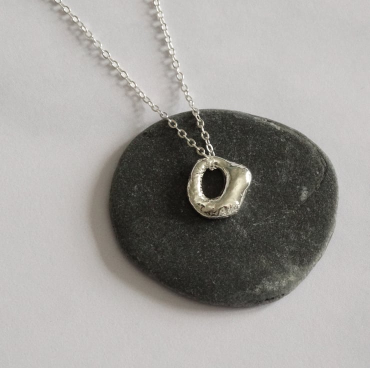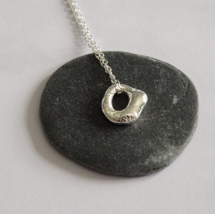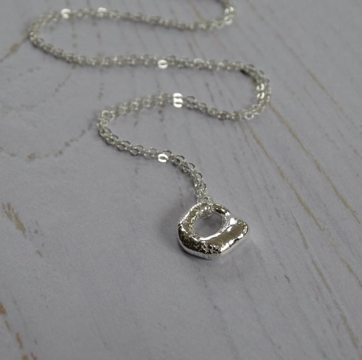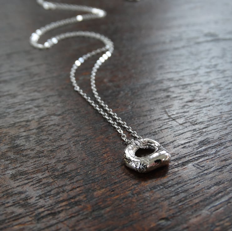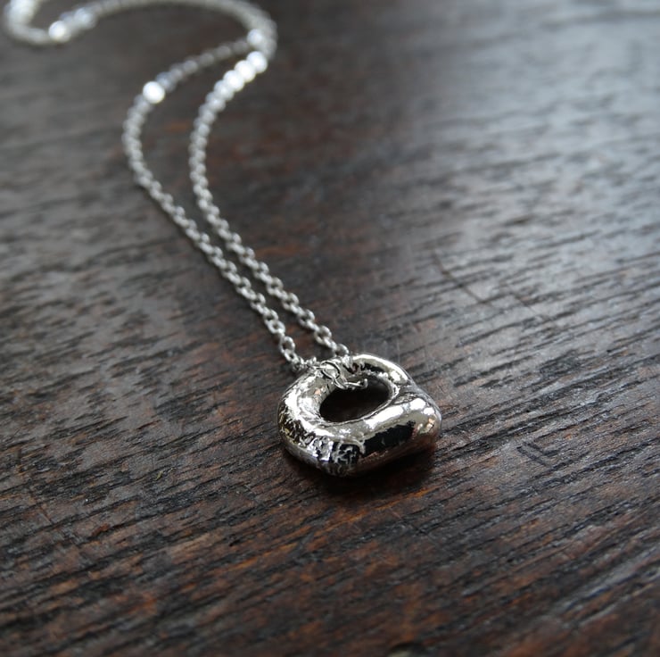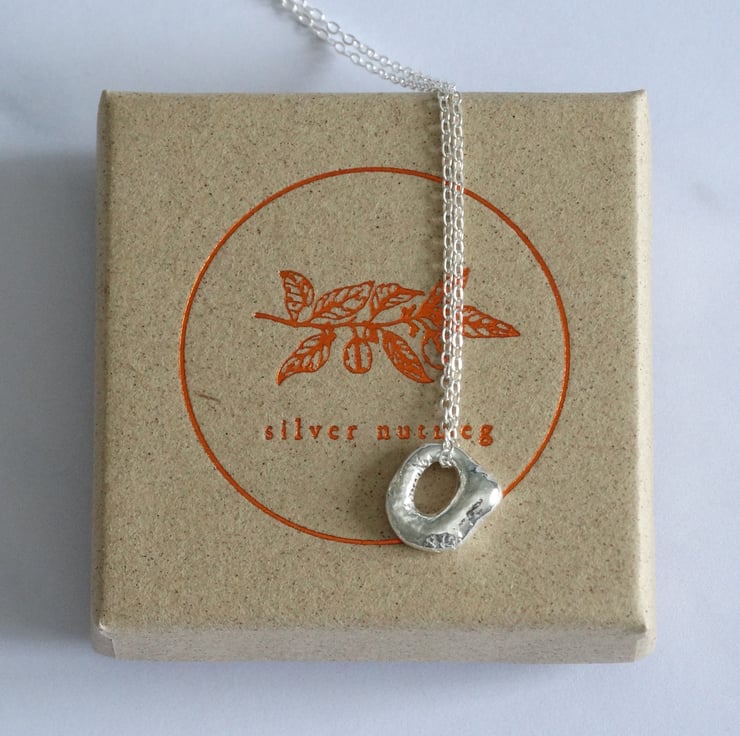 This sweet little charm has been formed from off-cuts of Eco Silver - nothing in my workshop goes to waste! The silver is heated until it starts to take shape. Each pendant comes out differently, so no two are ever the same (you will receive the one pictured in the first four images).