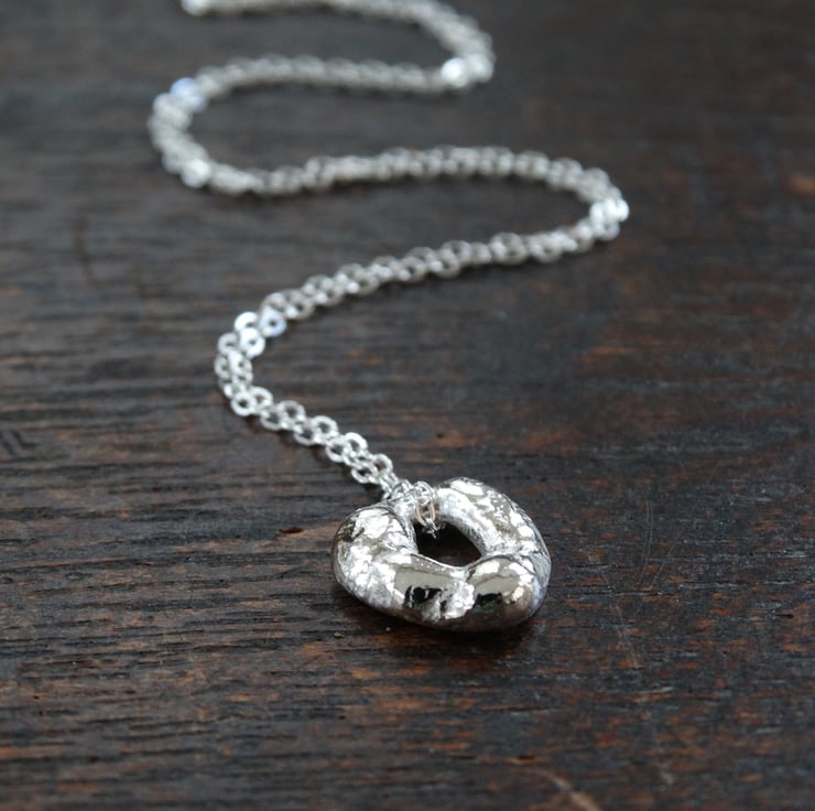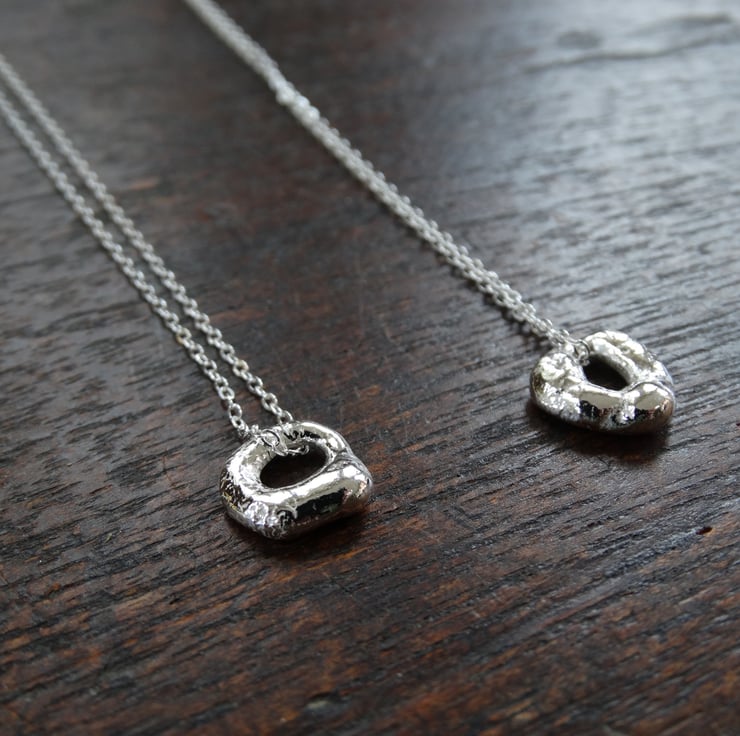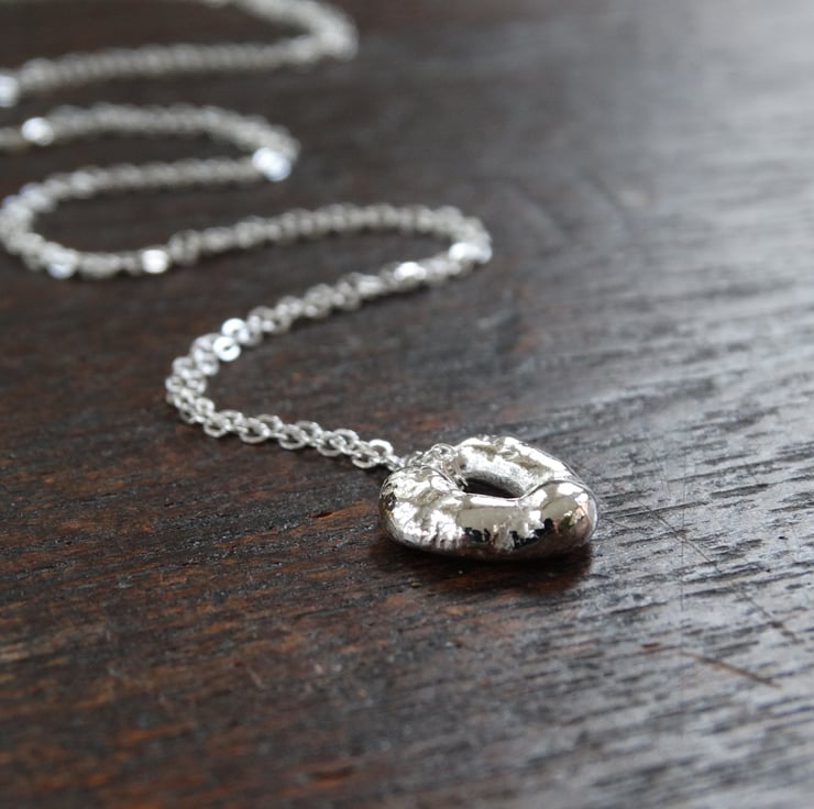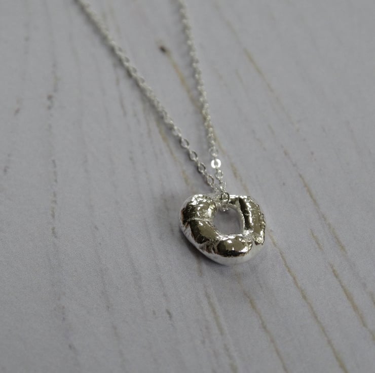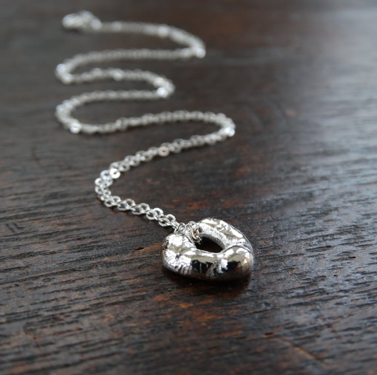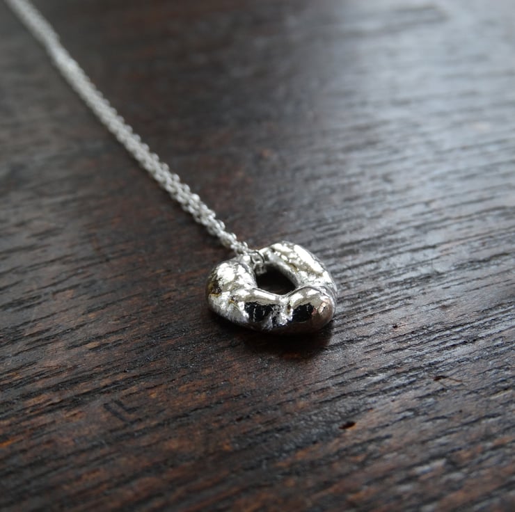 This sweet little charm has been formed from off-cuts of Eco Silver - nothing in my workshop goes to waste! The silver is heated until it starts to take shape. Each pendant comes out differently, so no two are ever the same (you will receive the one pictured in the first five images).