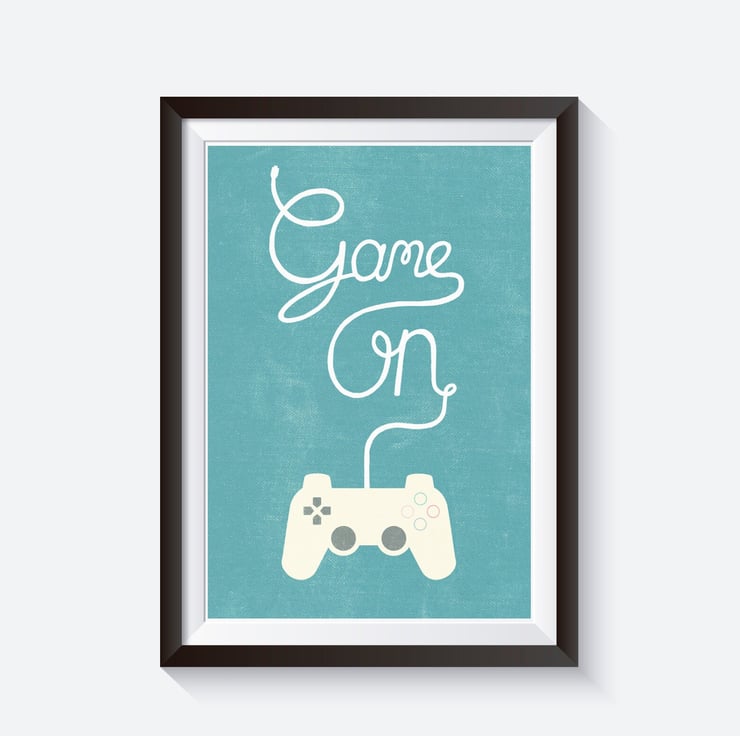 Game on video game print, this is a borderless print, if you would like a small white border please let us know at checkout.