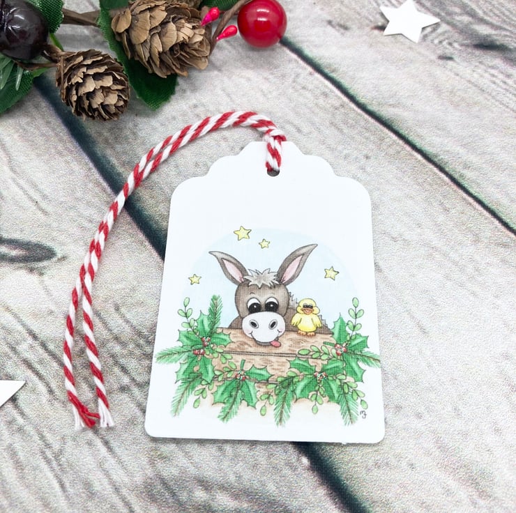 Christmas Donkey & Duck Gift Tags - set of 4 tags