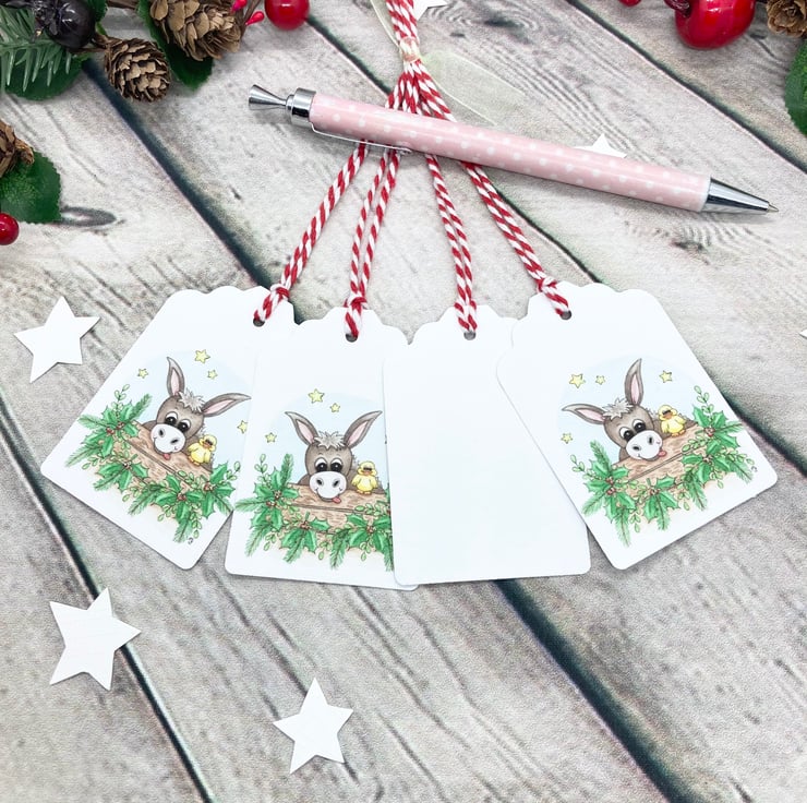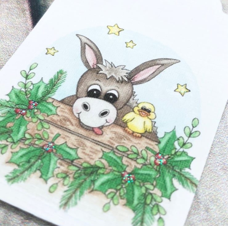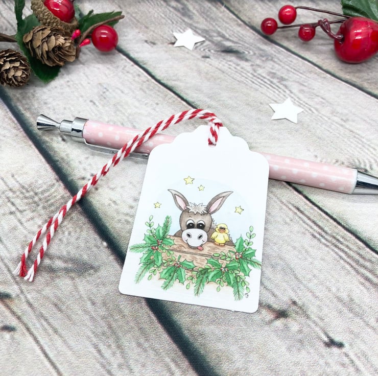 These cute Christmas Donkey & Duck gift tags have been designed using my own original watercolour illustration. I have designed them to match and compliment my handmade cards in the same design.