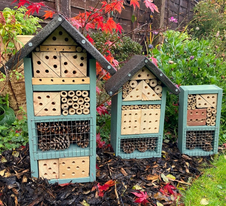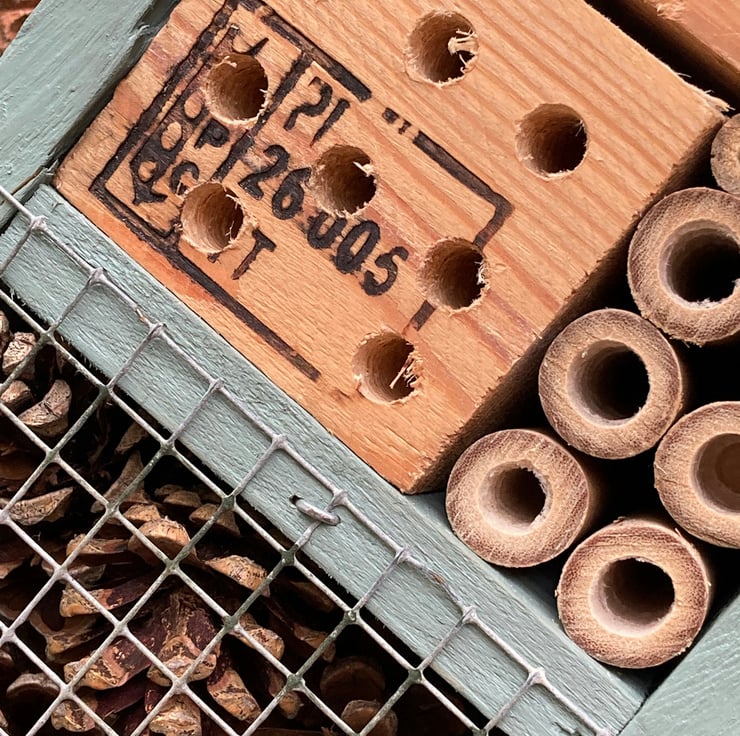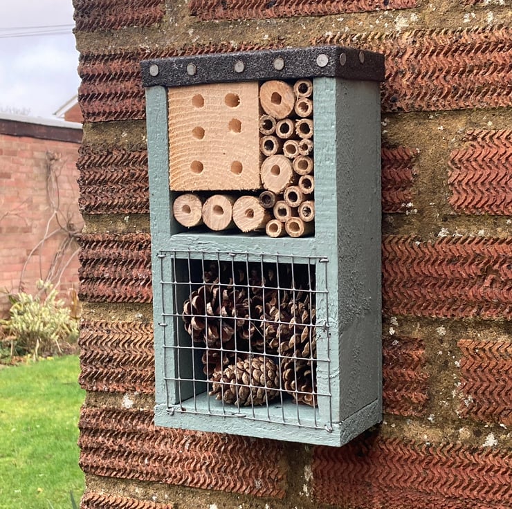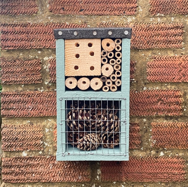 The drilled block pine and tubular tunnels of bamboo are perfect for bees and other bugs to nest, while sections of fir cones offer a safe place to hide for an assortment of other bugs and beasties. It is finished in roofing felt for added preservation, protecting the bug box from rain and wintery weather.