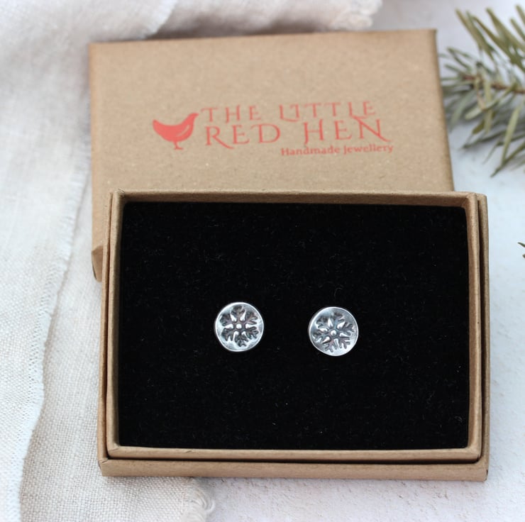 These silver snowflake earrings are presented in my logo printed boxes, which are made from recycled materials and are recyclable.