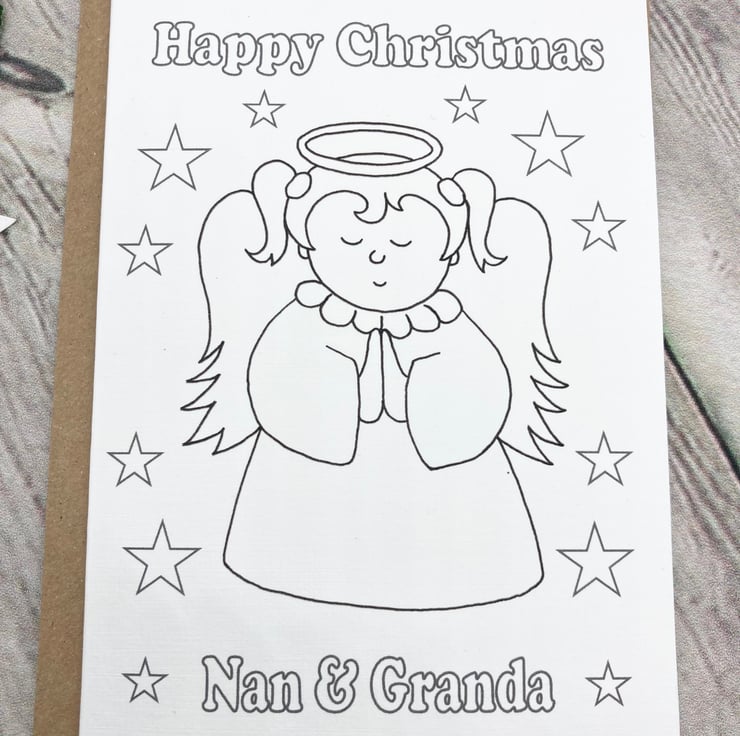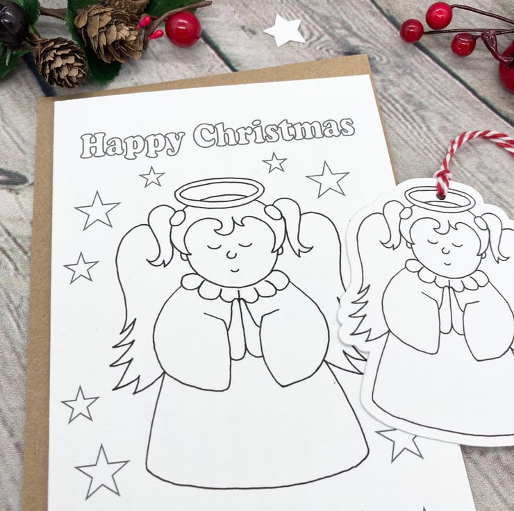Coloured By Christmas Card & Gift Tag - Girl Angel - Personalised