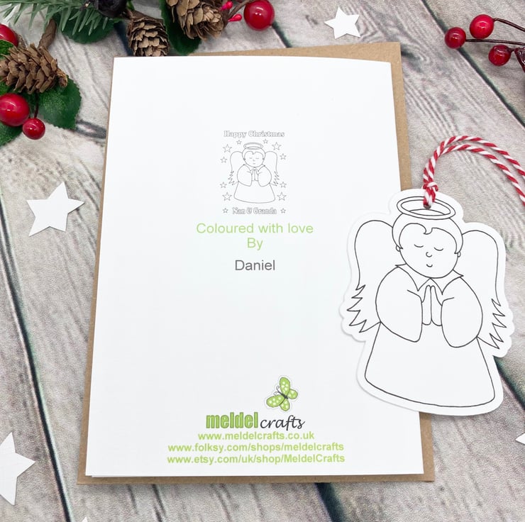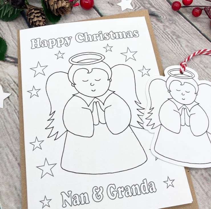 Coloured By Christmas Card & Gift Tag - Boy Angel - Personalised