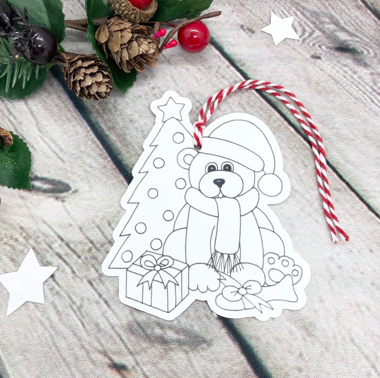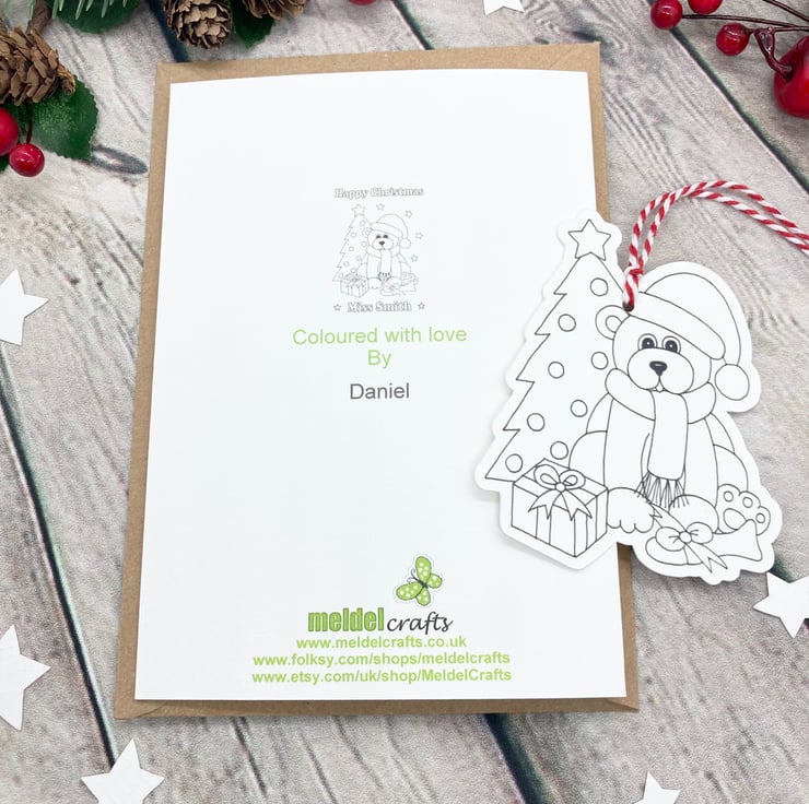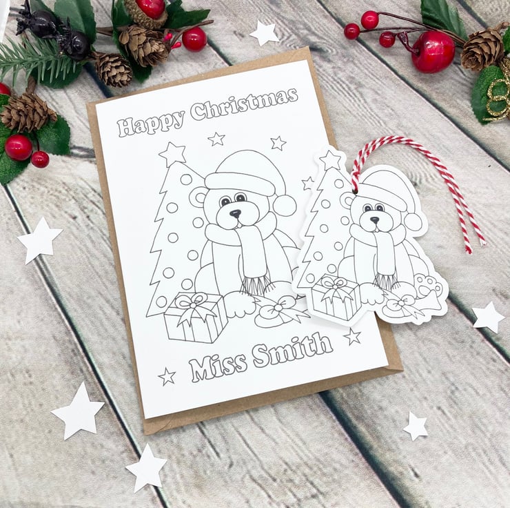 Coloured By Christmas Card & Gift Tag - Christmas Bear - Personalised