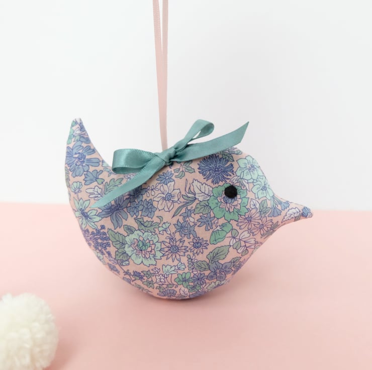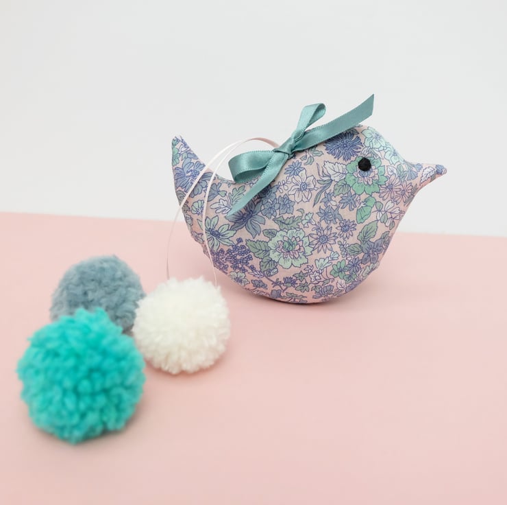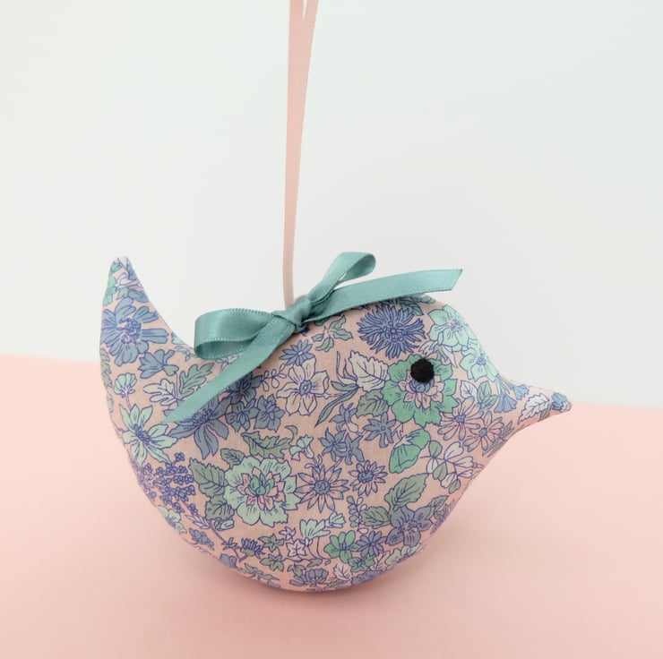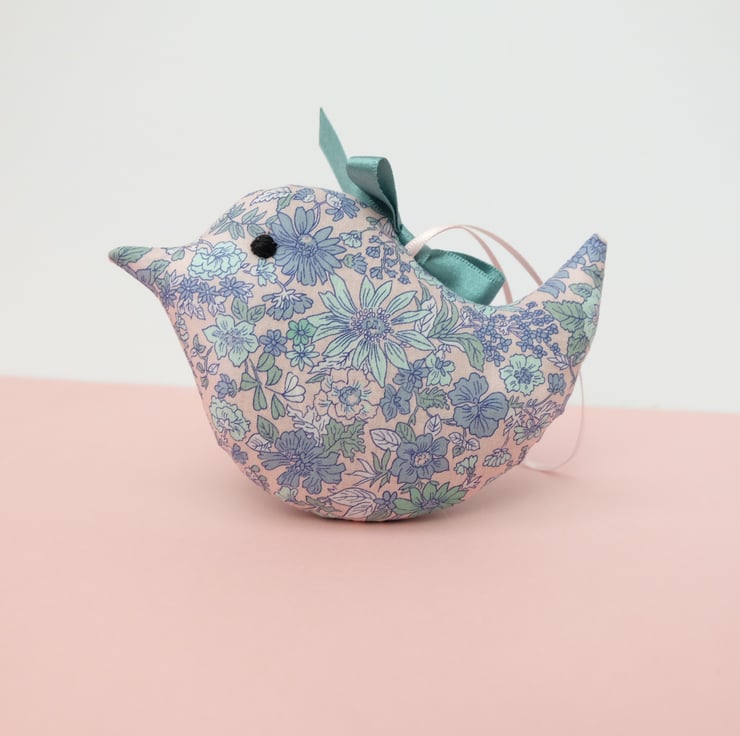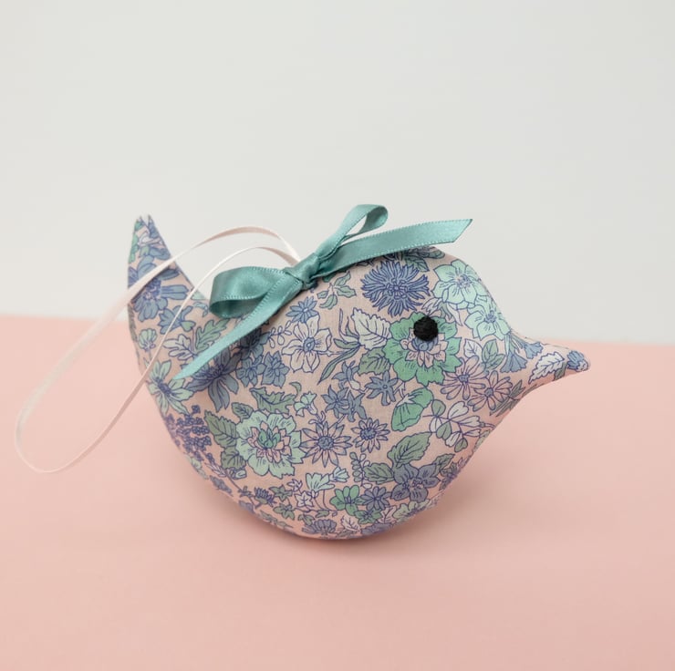 Liberty Emily Mint and Pink Floral Fabric Lavender Scented Mini Bird