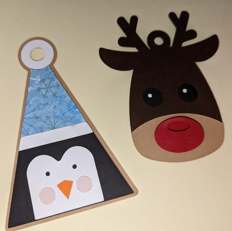 This is a set of 3 handmade gift tags made from card. You can choose either a reindeer set, a penguin set or a mixed set.
