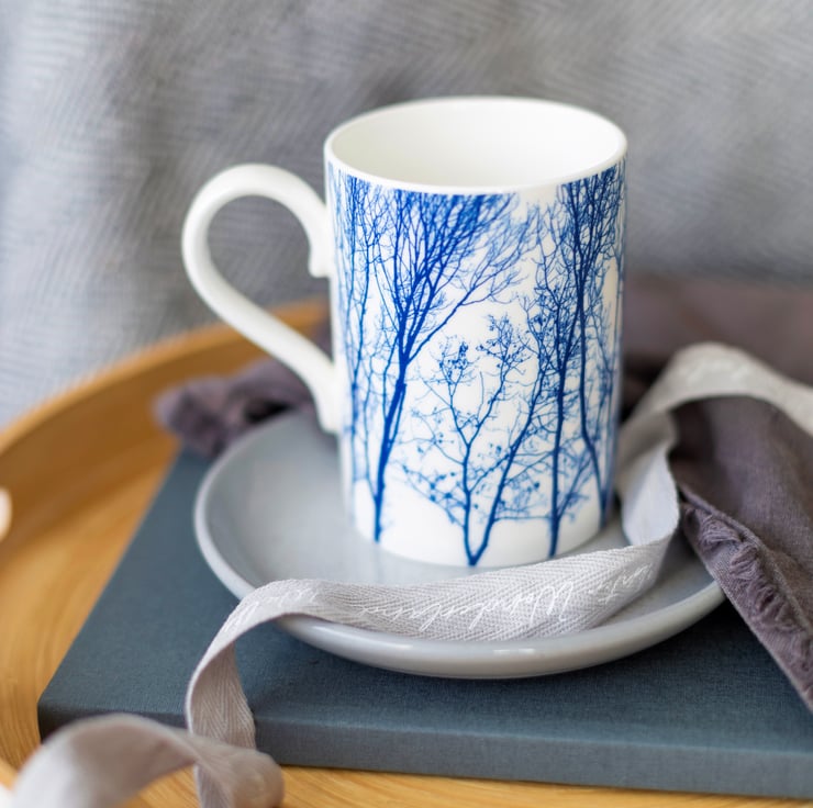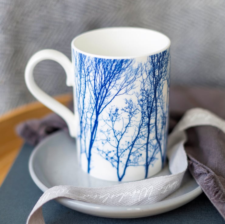 Taking inspiration from the strong British tradition of blue & white ceramics, a couple of years ago I started producing a unique collection of fine china mugs based on my Cyanotype designs. My delicate blue and white Cyanotype designs naturally lend themselves to being applied to pottery and have proved very popular. They are hand decorated and fired by a small family run company in Staffordshire, hopefully helping to keep the centuries old tradition alive in the Potteries.