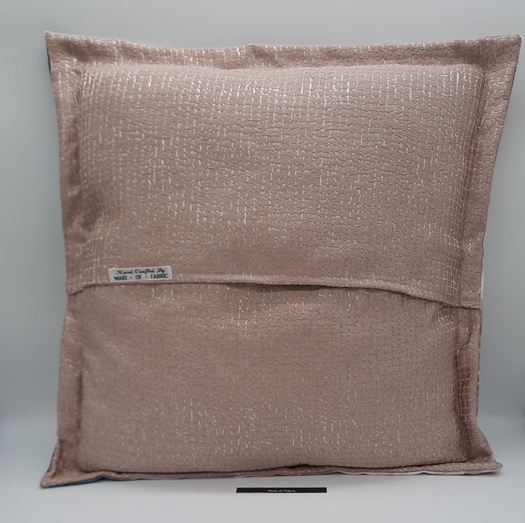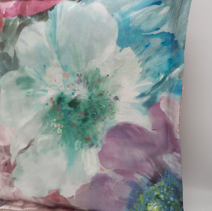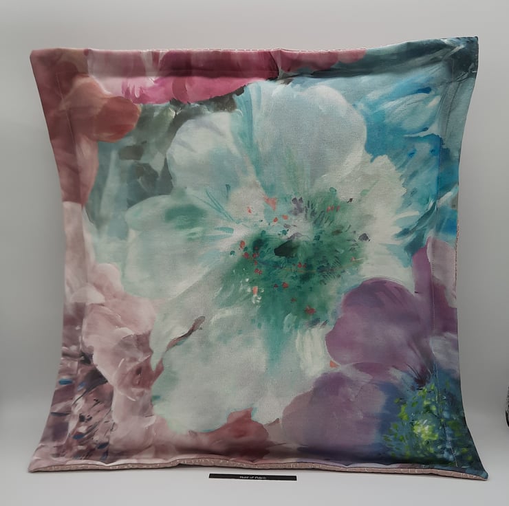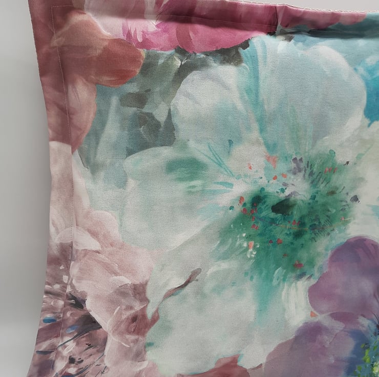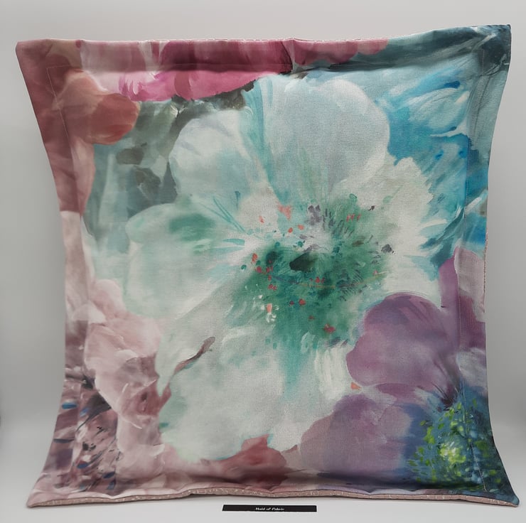 I have used a big flower print fabric for this piece. It has an envelope back with a pink waffle effect fabric.