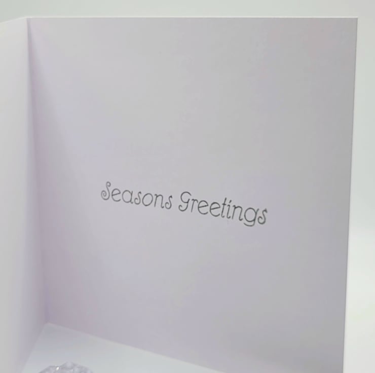 Inside is white and has a simple stamped sentiment in soft grey saying SEASON'S GREETINGS.