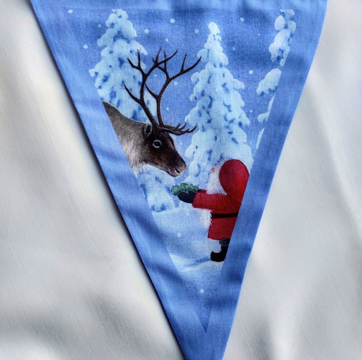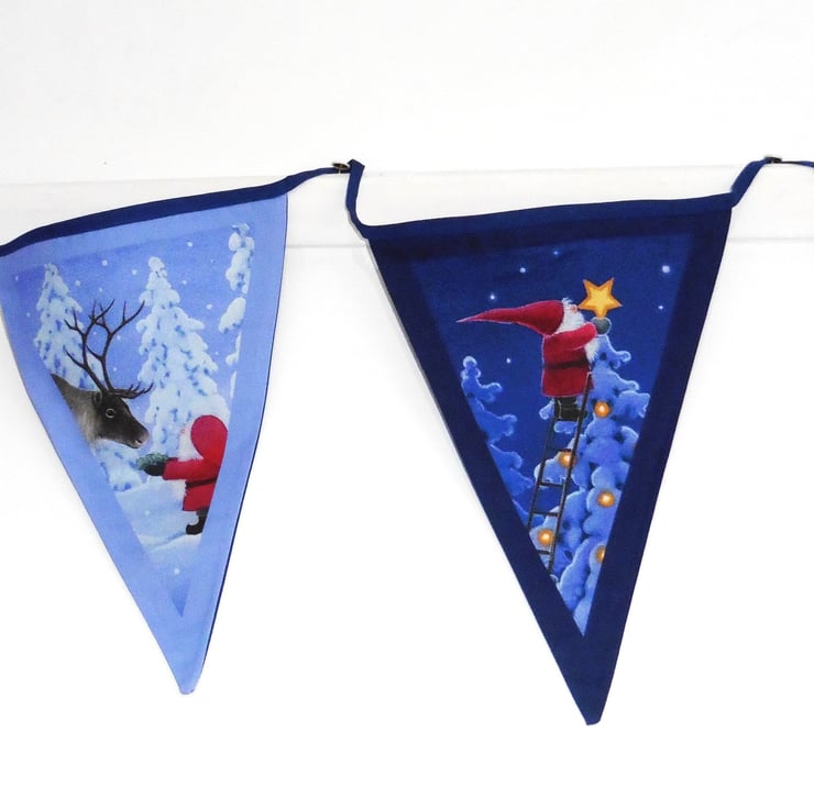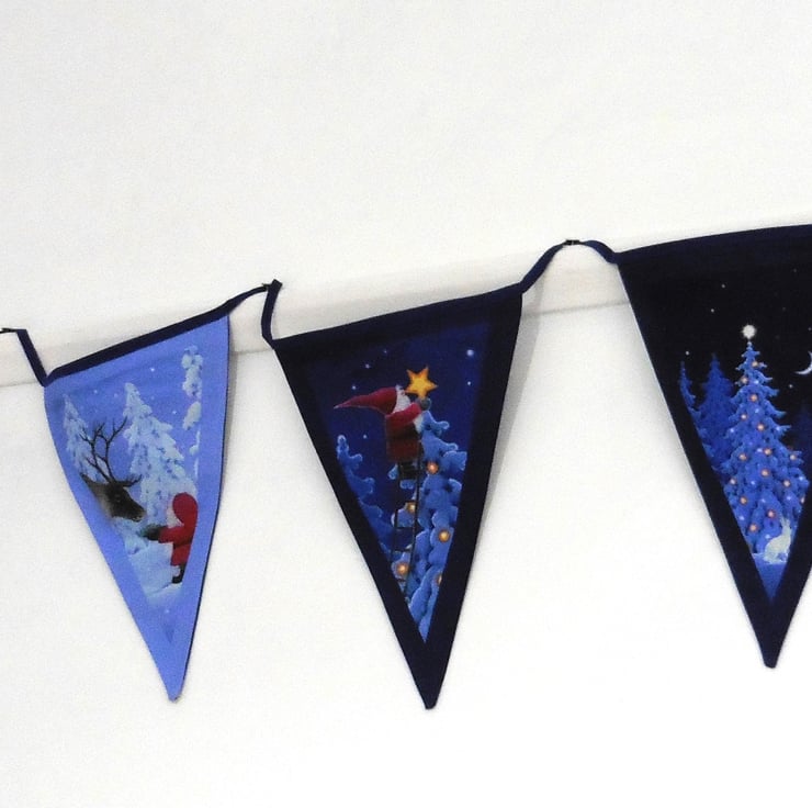 This festive bunting captures Santa in a series of cheerful scenes, ice skating, trimming the Christmas tree and more.