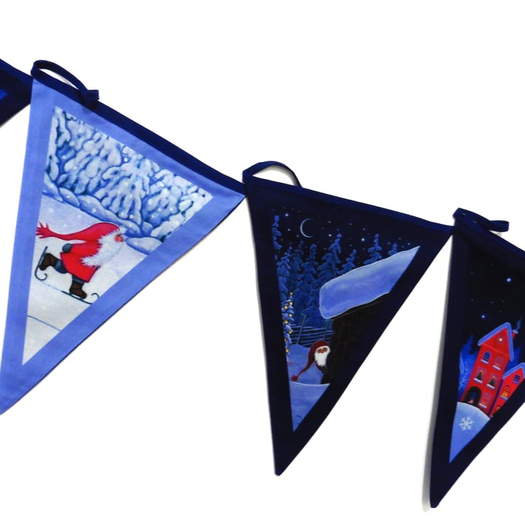 Each strand of bunting has 7 flags, each one measures approximately 18 cms wide by 24 cms long, total length (including ties) is 2.5 metres.