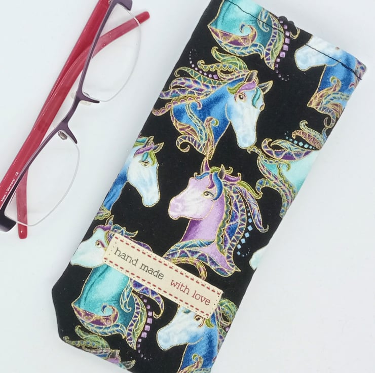 It is wadded to protect your glasses and features a hand made with love label on the reverse. The lining is in black cotton.