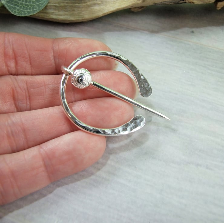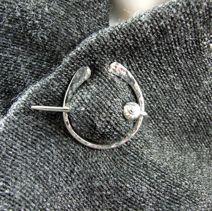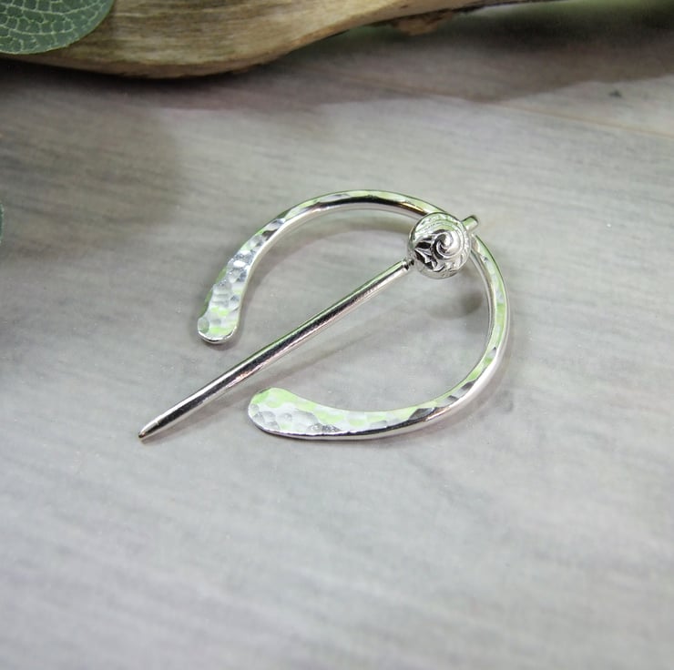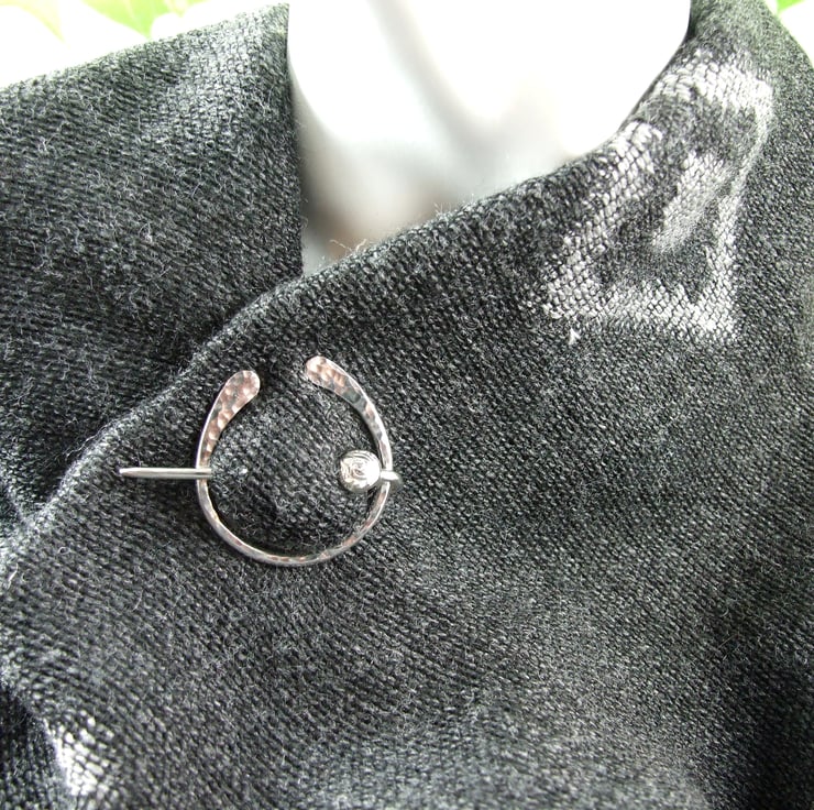 Hand forged hammered Sterling Silver Celtic Penannular Brooch with Little Spiral for Open Weave or Knit Shawl, Scarf, Wrap or Cardigan.