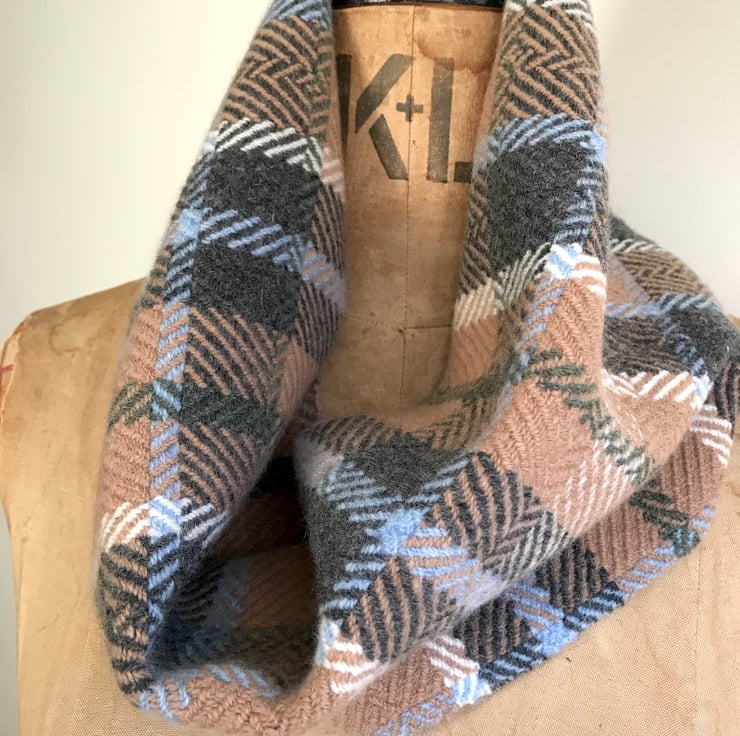 A wonderfully soft lambswool cowl scarf designed and handwoven in my North Yorkshire studio.