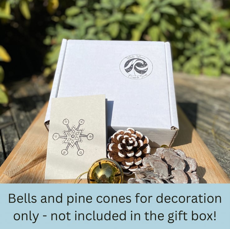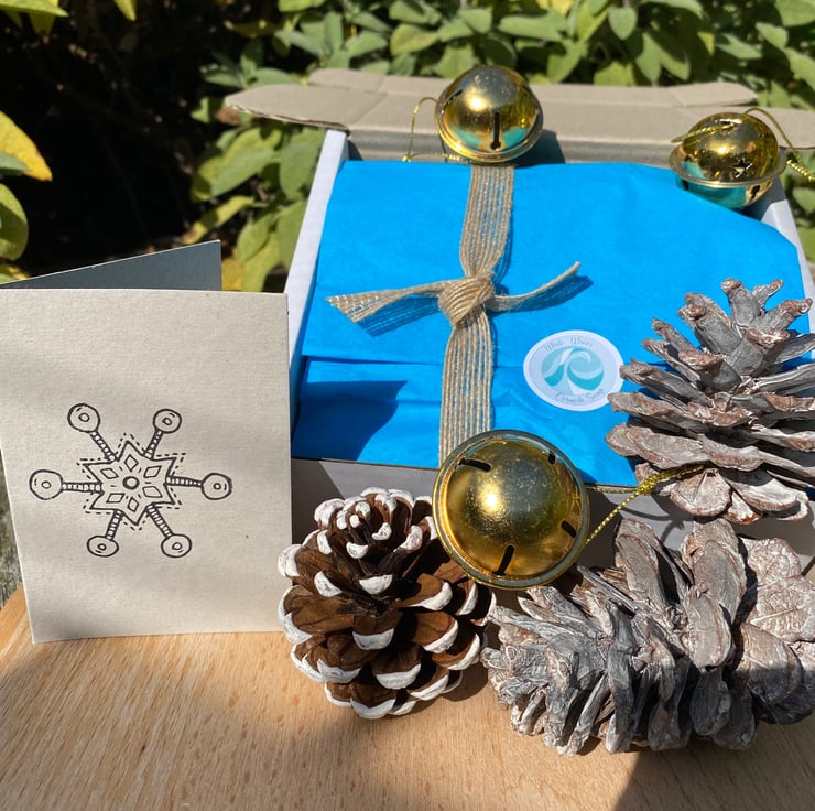 Each gift is tied with a ribbon (precise ribbon may vary from that shown, but will always be plastic free), and supplied with a hand stamped gift card and envelope. I can write a short message in the card for you, or it can be left blank for you to personalise! Please indicate in the options on purchasing whether you would like a Christmas themed, or generic card (more options on the cards will follow next year!).