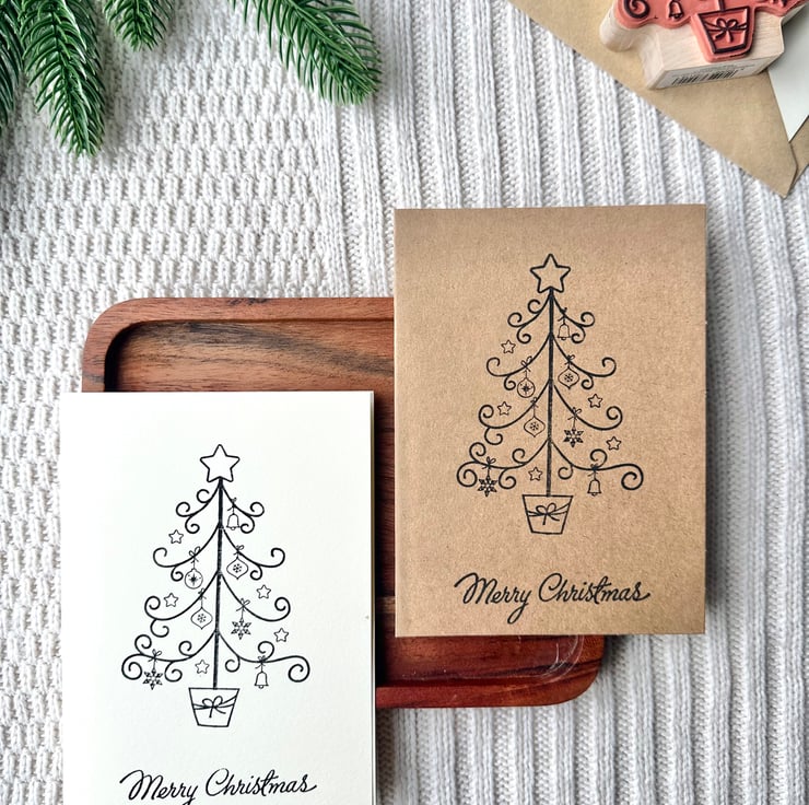 An elegant card with a simple Christmas tree design to wish Merry Christmas to your loved ones.
