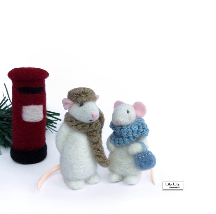 This listing is for two little cute white mice, needle felted with wool by Lily Lily Handmade. A one of a kind collectable. The mice have been handmade, needle felted using unspun wool.