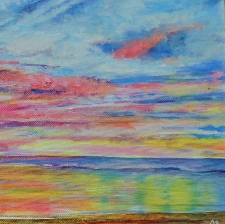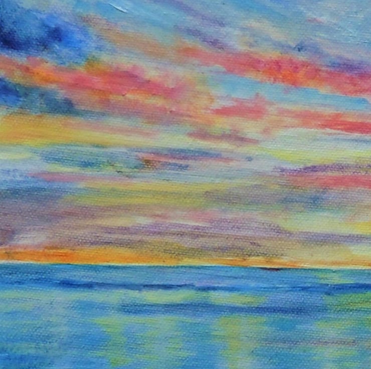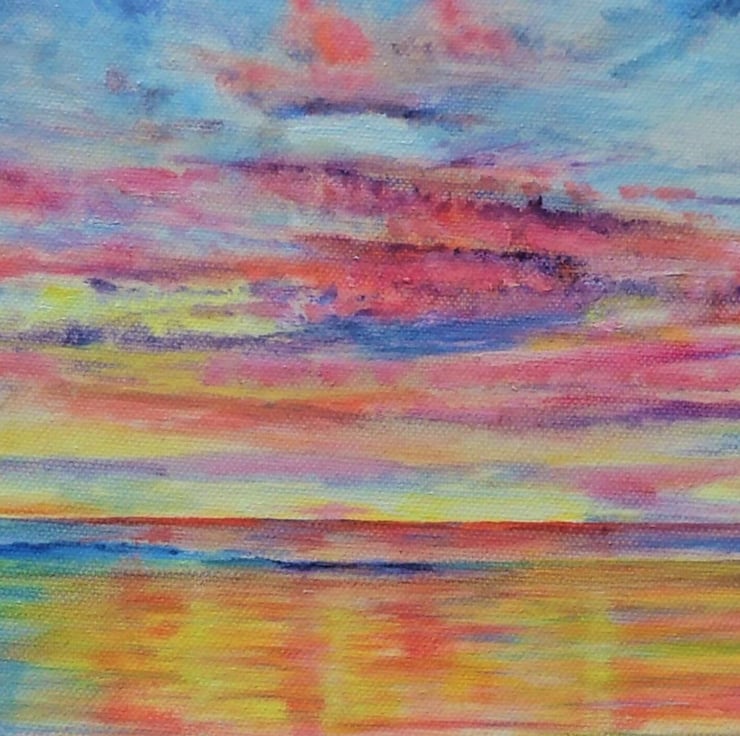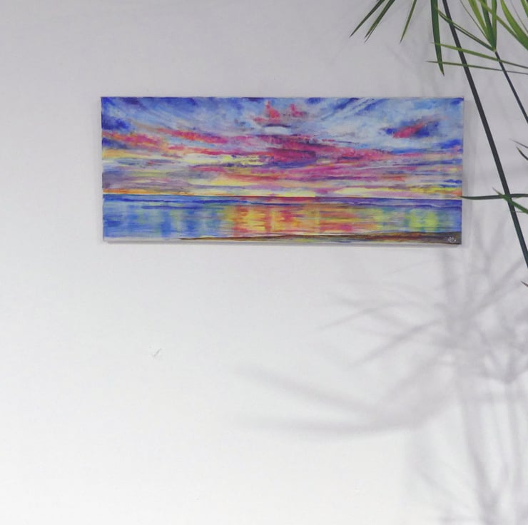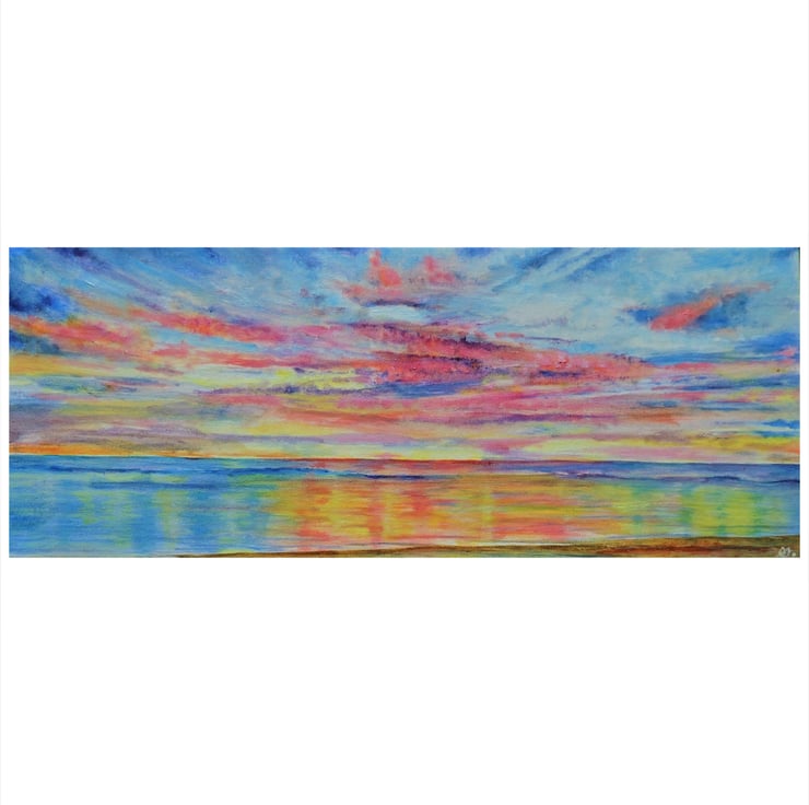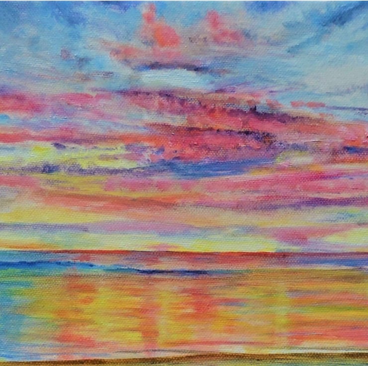 A colourful tropical sunset beach oil painting