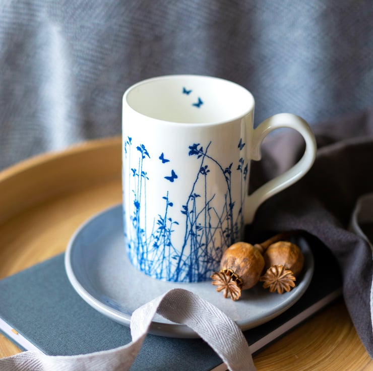 Taking inspiration from the strong British tradition of blue & white ceramics, Sarah realised her delicate blue & white cyanotype designs naturally lent themselves to being applied to pottery. Sarah is now delighted to bring you her unique collection of fine bone china that hopes to bring a little of our wonder in the intricacies of nature into our homes.