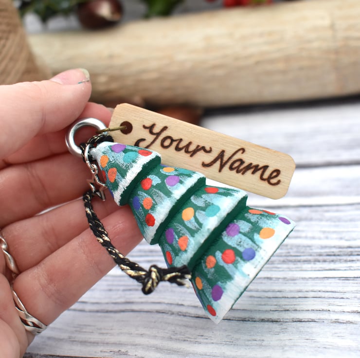 A hand painted Christmas tree, ideal to hang on your tree or anywhere you are festively decorating! This one is medium.