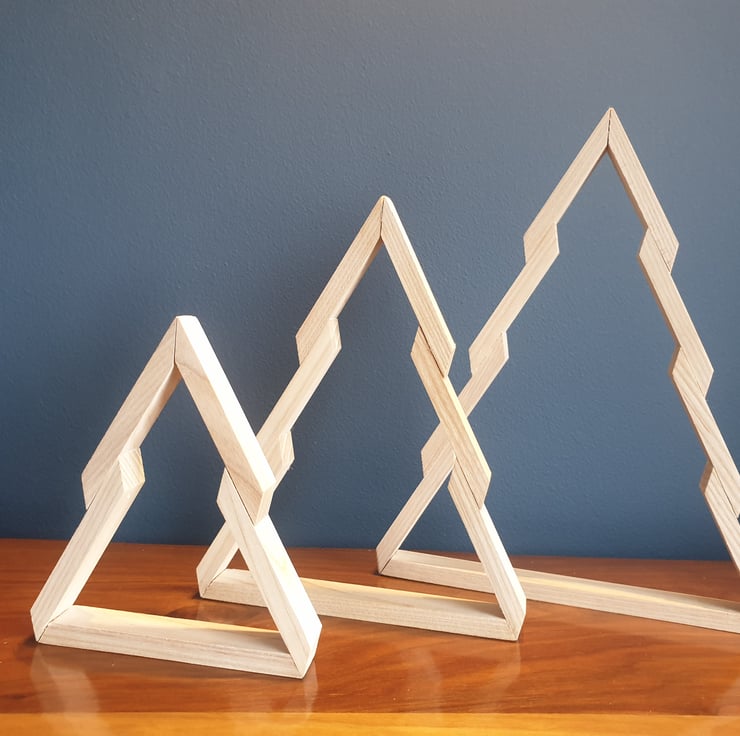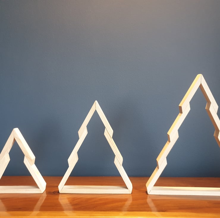 Handmade solid Ash Christmas tree set of 3.