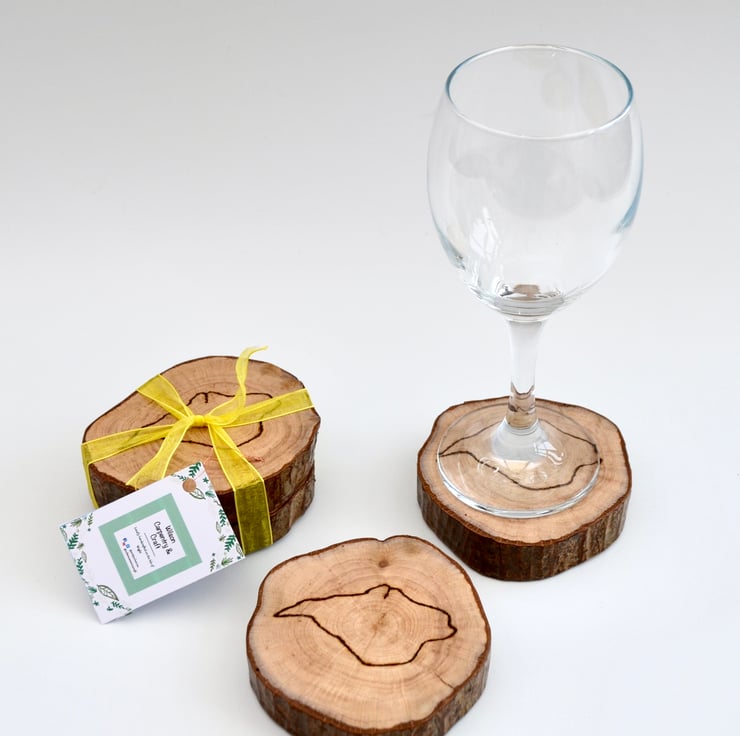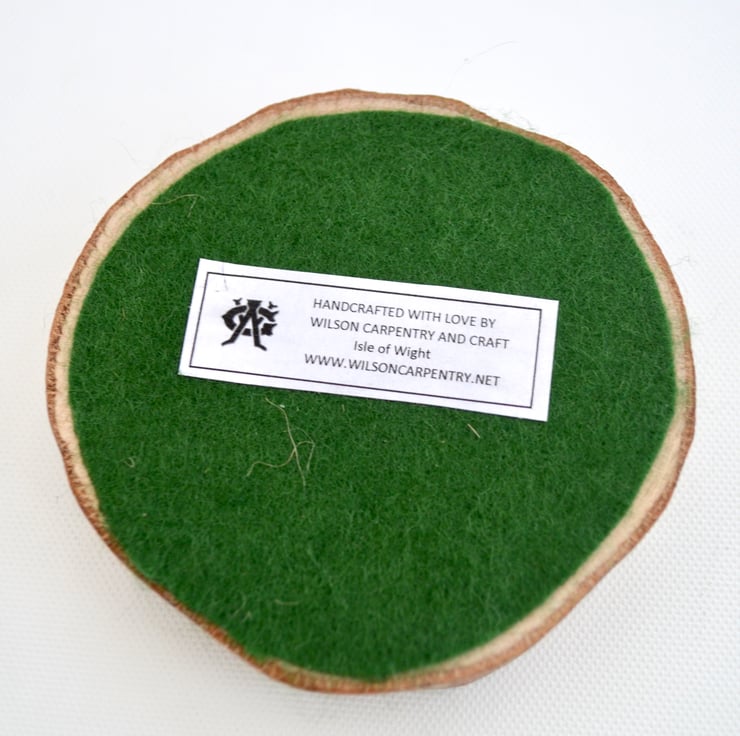 Wooden coasters approximately 8cm across. Choice of Isle of Wight themed or plain mats.