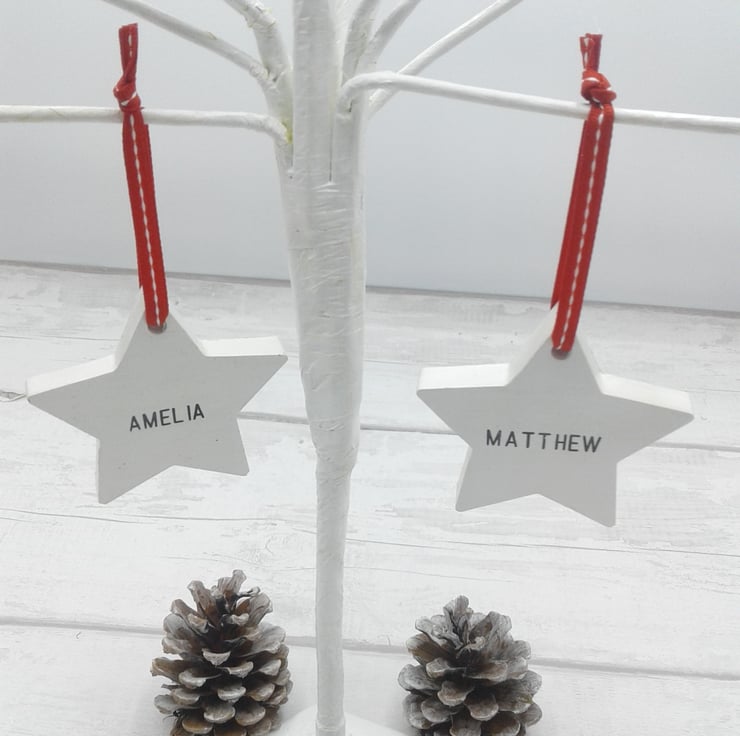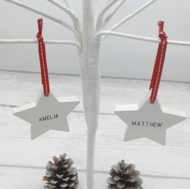 This is a personalised ceramic star decoration that will be treasured