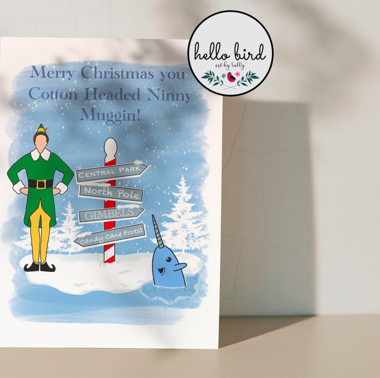 Elf themed christmas card featuring my own illustration of Buddy the Elf.