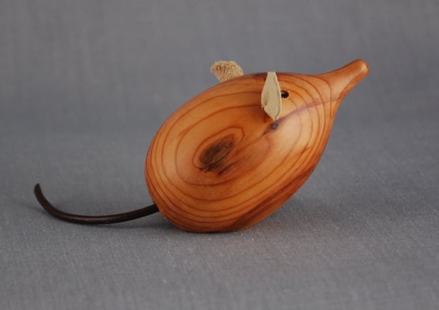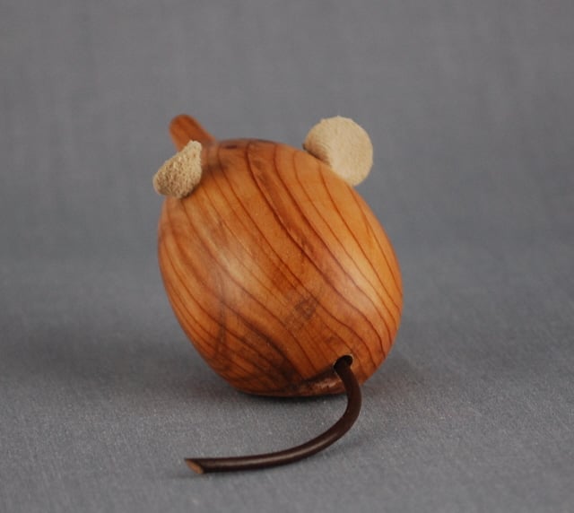 Yolanda Mouse has been hand turned by Randal from our generous yew tree, Entwhistle. Yolanda is a very serious mouse and has an excellent record at school, being both studious and punctual. Yolanda measures approximately 9cm long with her tail and 3.5 high.