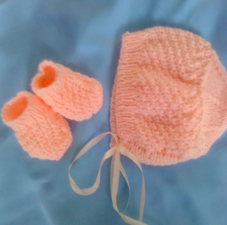 This set is in stock in the peach colour shown to fit a 0 - 3 month old baby with a 16" chest. It can also be made for you in a size and colour of your choice. Please see below for sizes available and let me know the colour required when you order. The processing time for this set will be between 1 and 2 weeks.