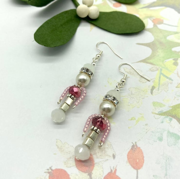 These Nutcracker soldier earrings have been extremely popular and for this year I've introduced this gorgeous pale pink version - the half coating pink metallic finish to the rondelle I used for his body is so pretty.