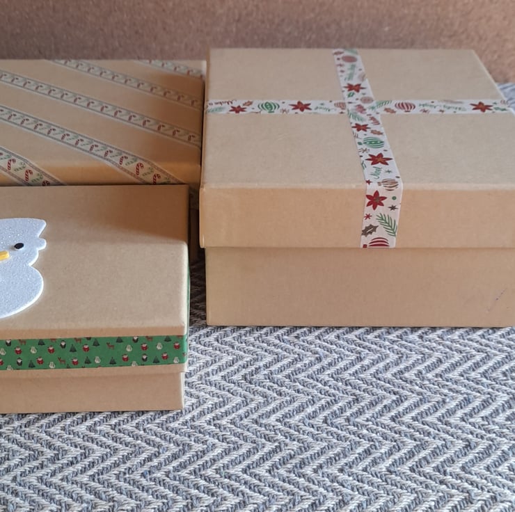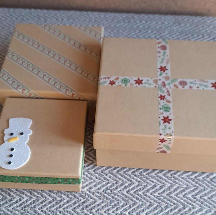 Sturdy set of 3 square decorated boxes. Perfect for that little bit of extra on your Christmas gifts.