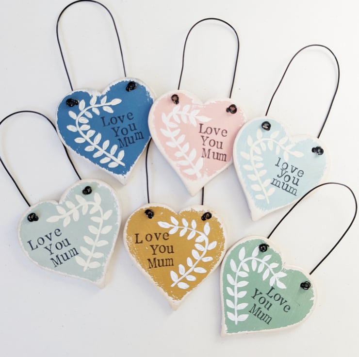 These little birchwood hearts are all individually hand painted, and stamped with words of love!