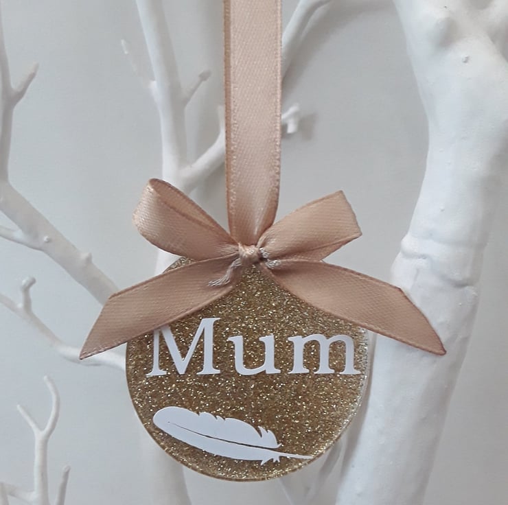 Personalised Glitter Feather Bauble, Personalised Christmas Tree Decoration, Hanging Tree Decoration